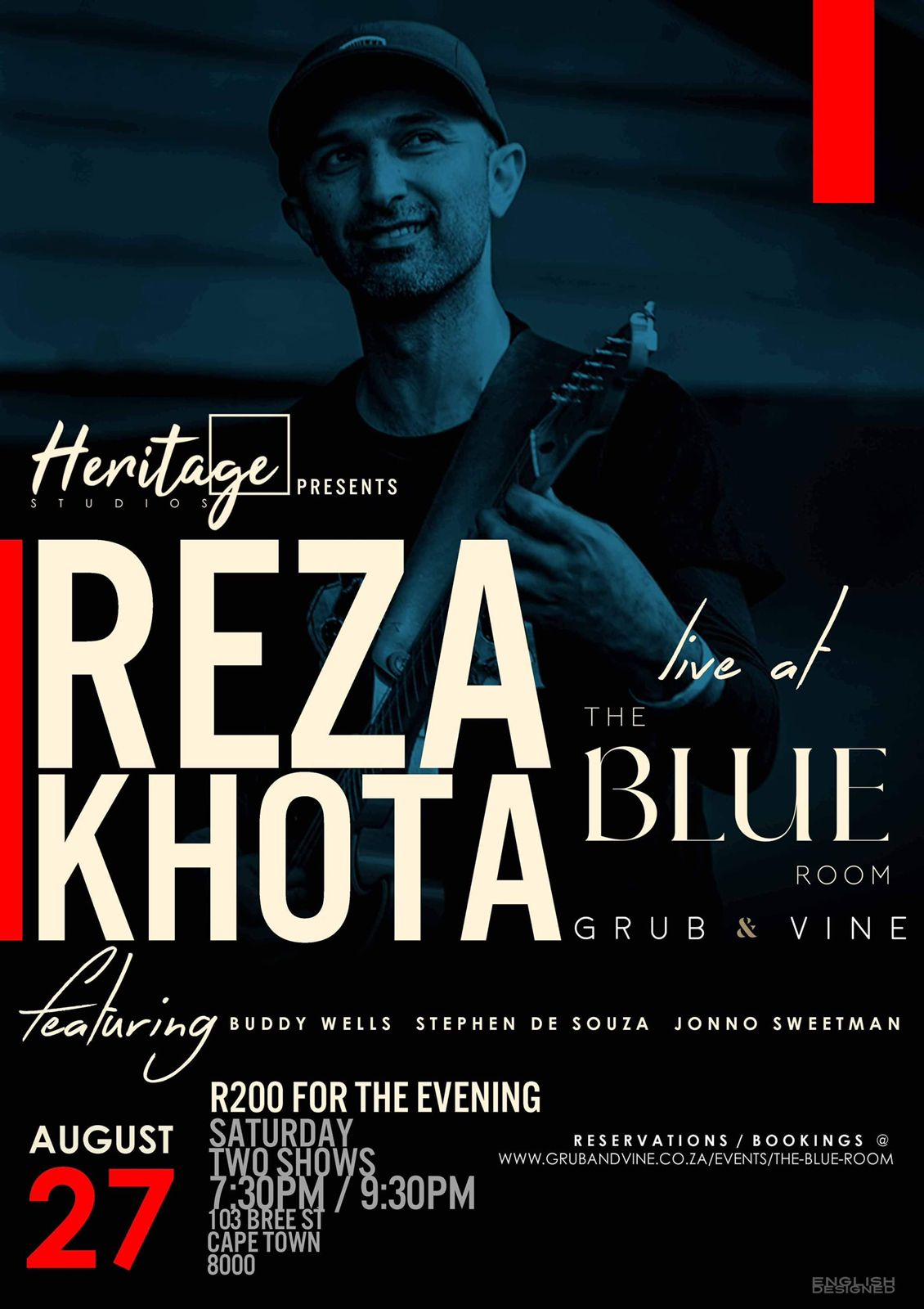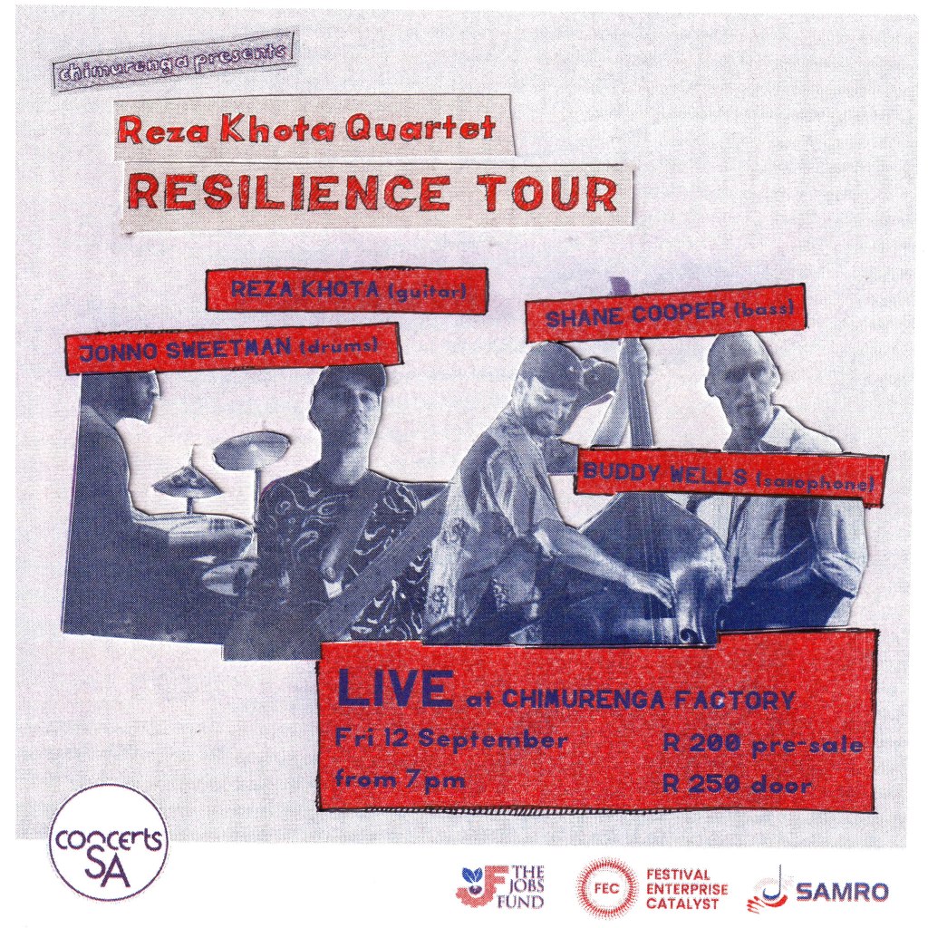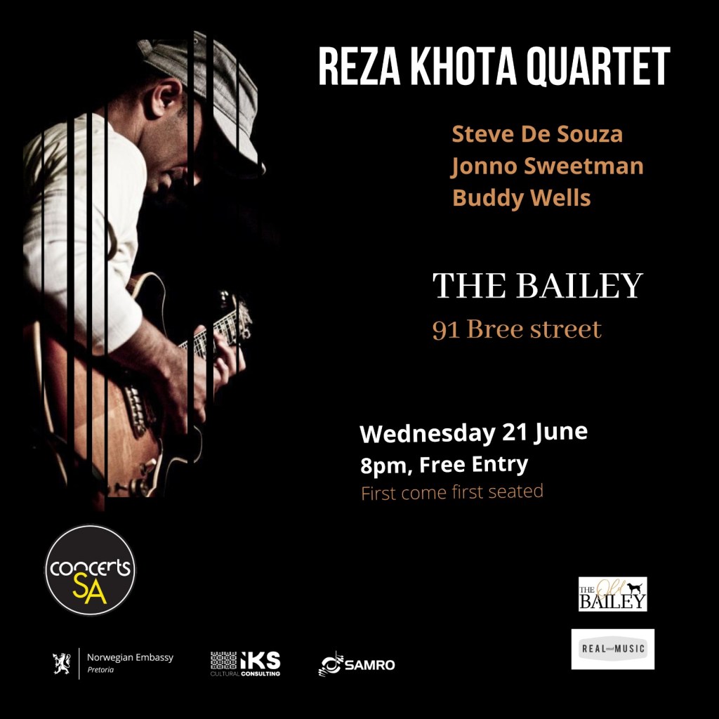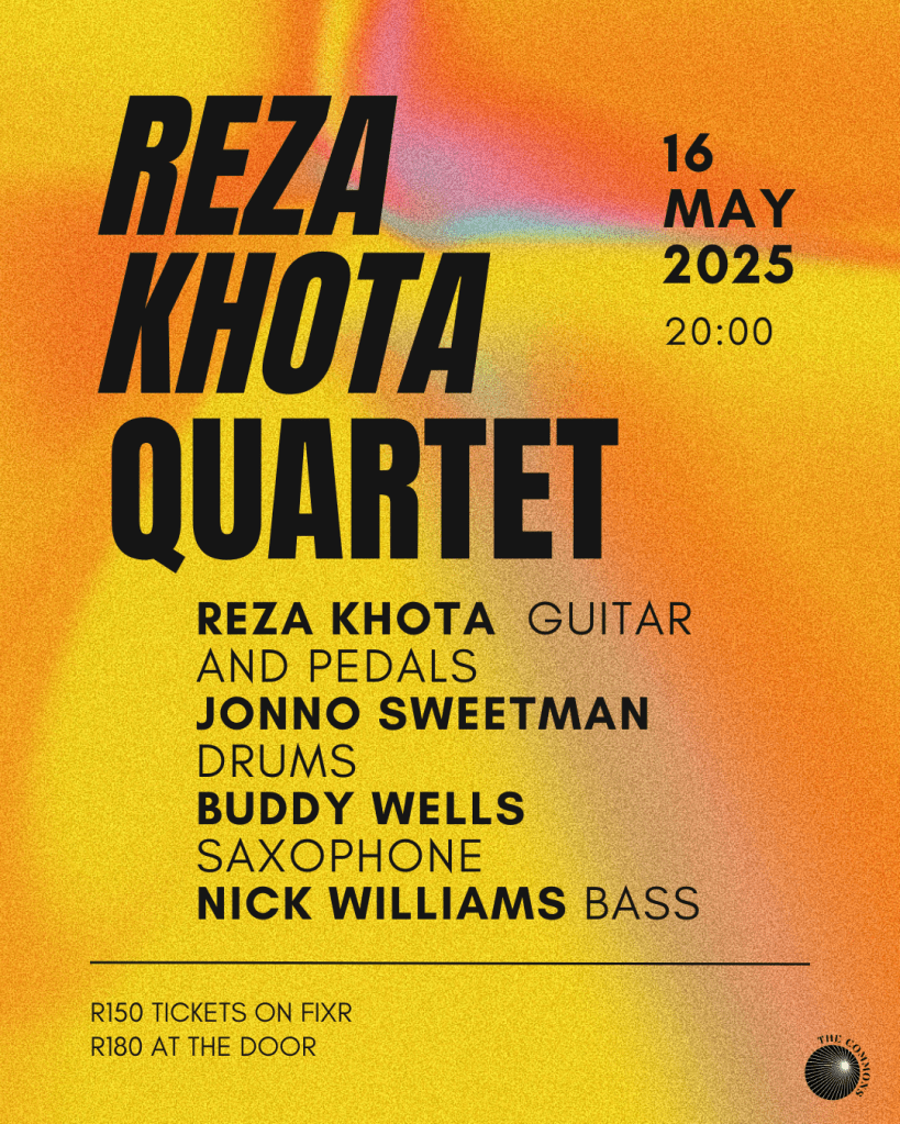 7th July, 21:30 at the DSG Auditorium. Bookings: https://www.nationalartsfestival.co.za/events/reza-khota-quartet/