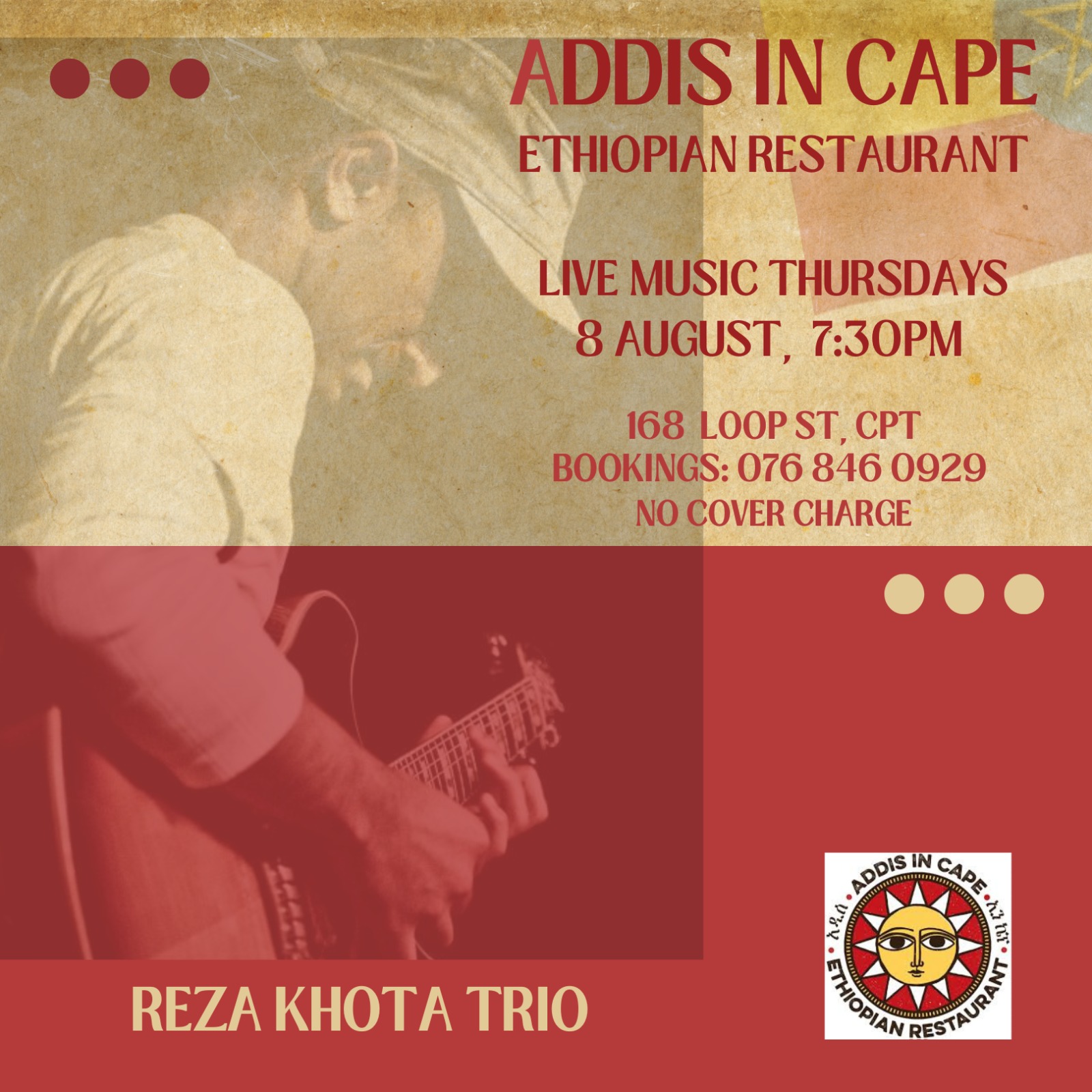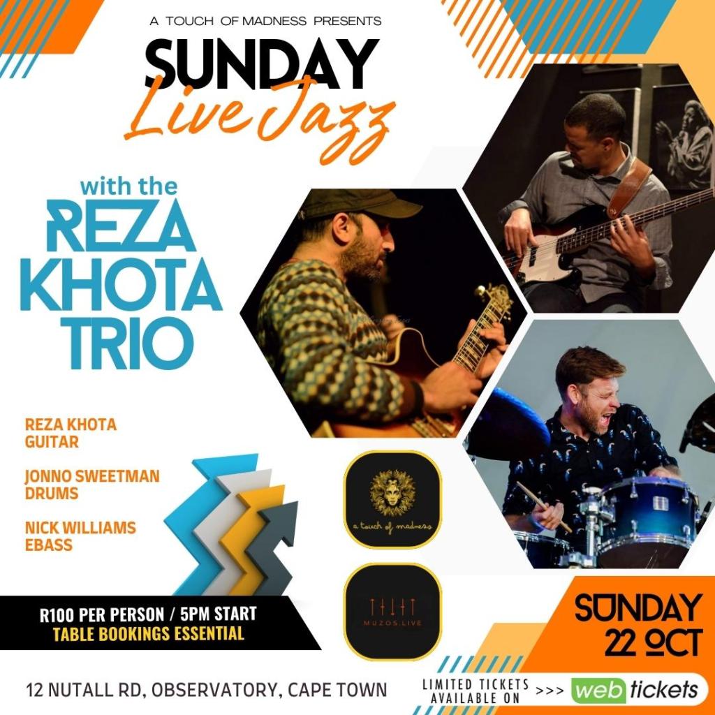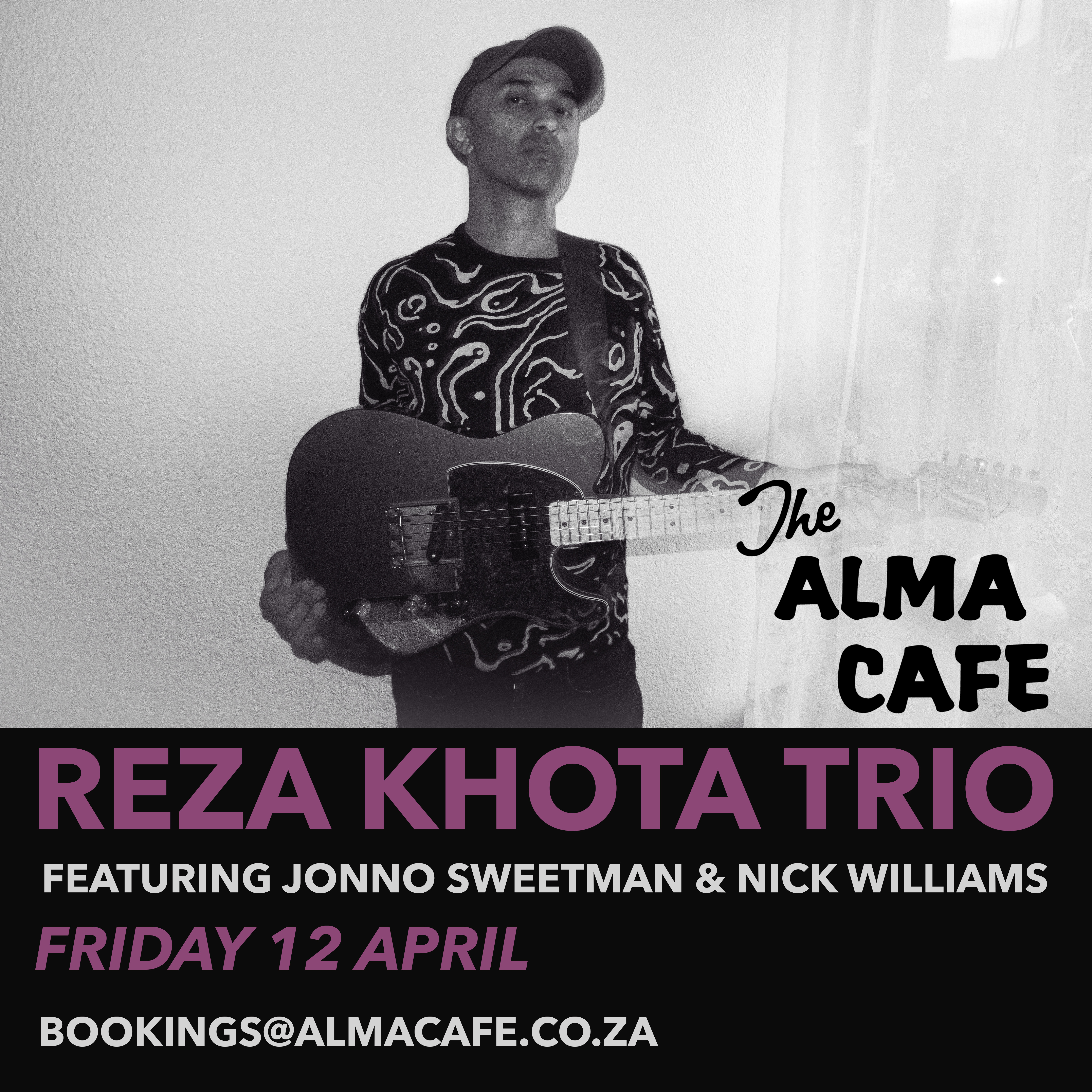 Reza Khota Trio @ The Alma Cafe, 19 August 2023. 7pm. R180 bookings: bookings@almacafe.co.za