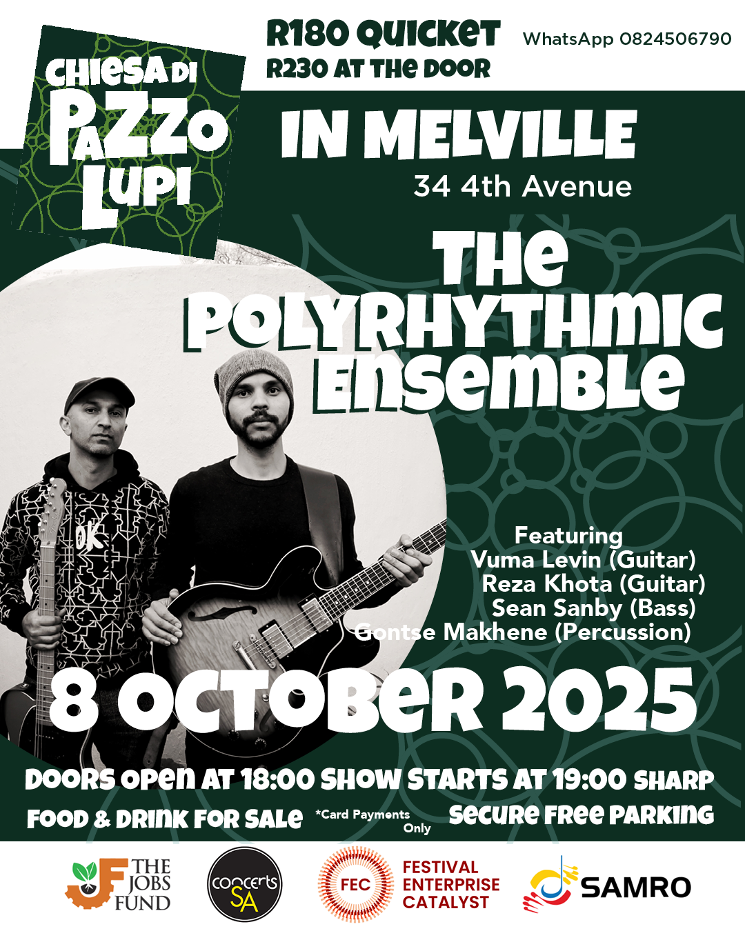 Featuring original afro/folk vocal music composed by Mark Fransman and performed by Reza Khota (guitar), Nicholas Williams (bass), Joseph Avergel (percussion) and Mark Fransman (vocals & guitar). CALL 0766792697 TO BOOK!